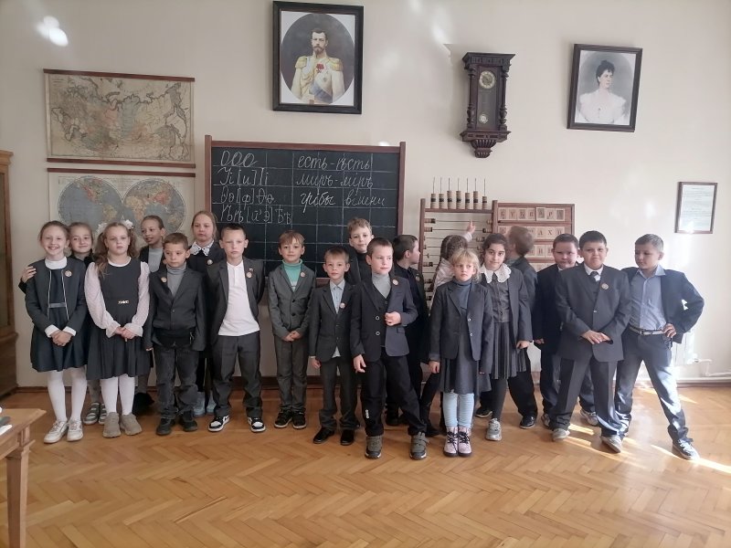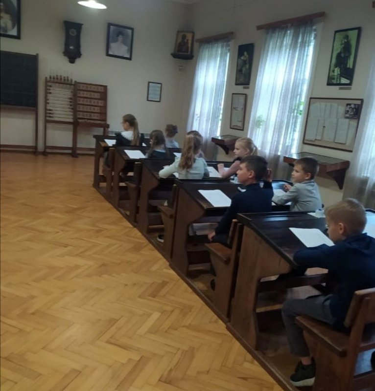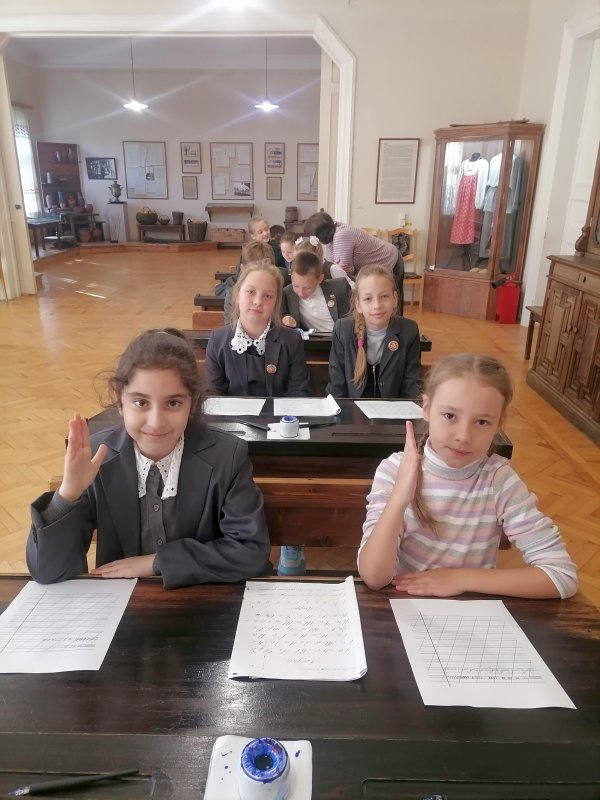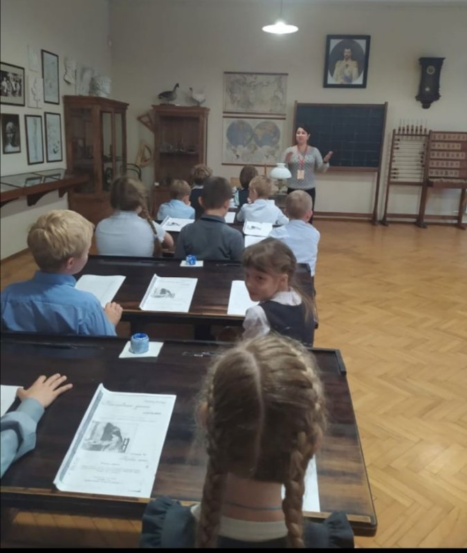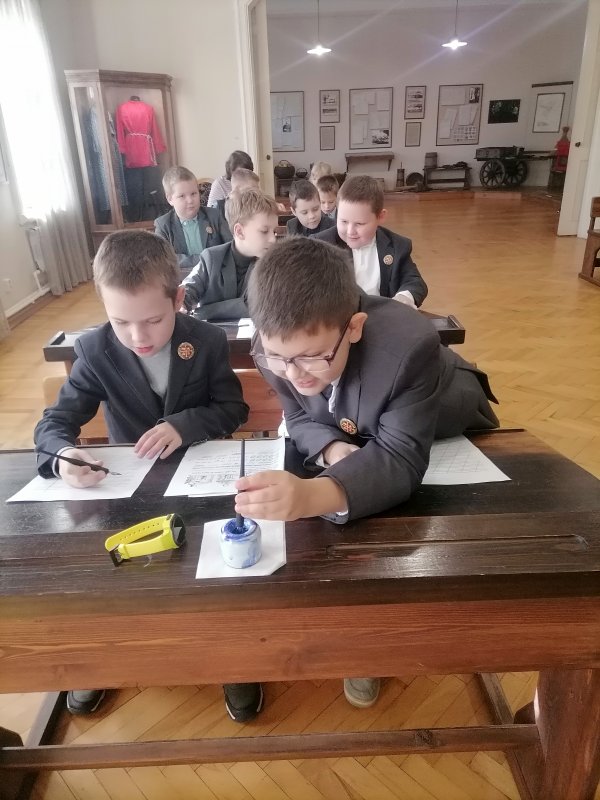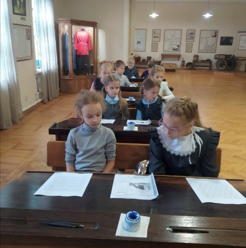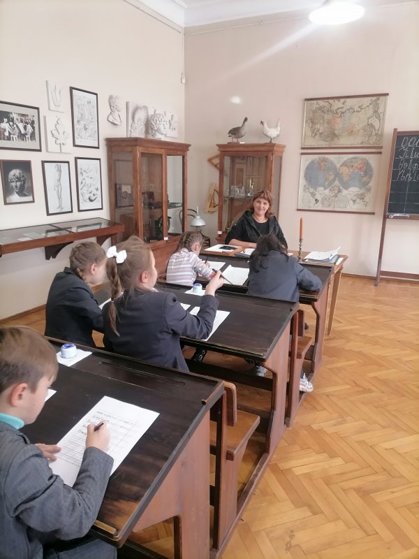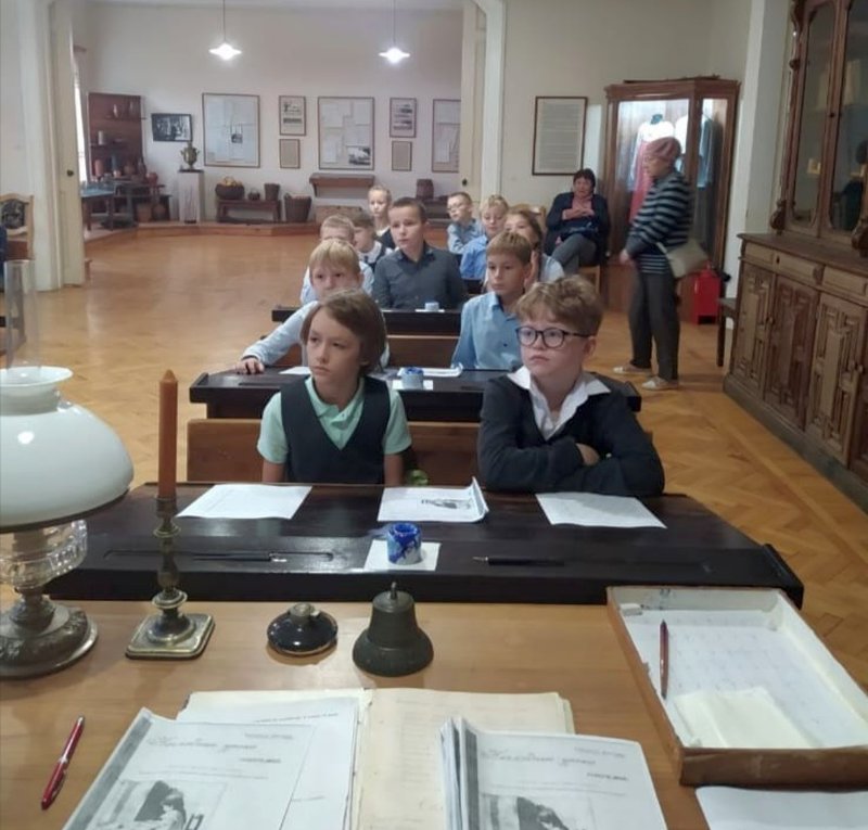 Побывали ребята и в классах сельскохозяйственной школы для крестьянских детей,которую в свое время открыла княгиня М.К. Тенишева. Гимназисты познакомились со старославянским алфавитом и с интересом и старанием писали перьевыми ручками, используя чернила.