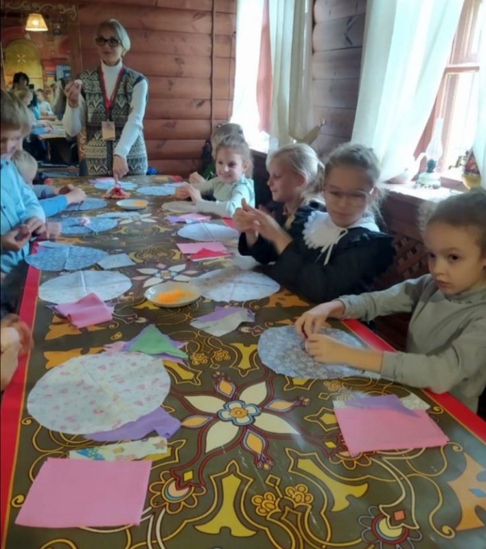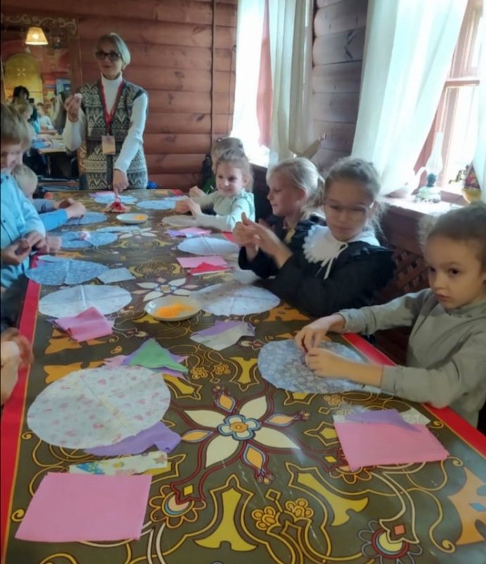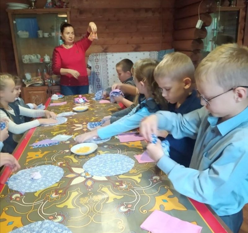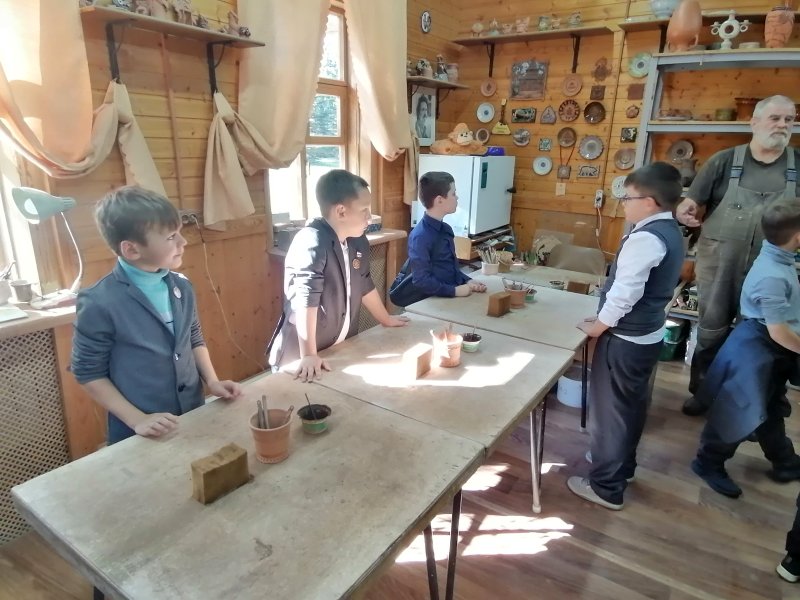 После экскурсии и прогулки по территории усадьбы, для девочек был проведен мастер-класс по изготовлению тряпичной куклы-колокольчик, а для мальчиков прошел мастер-класс в гончарной мастерской.