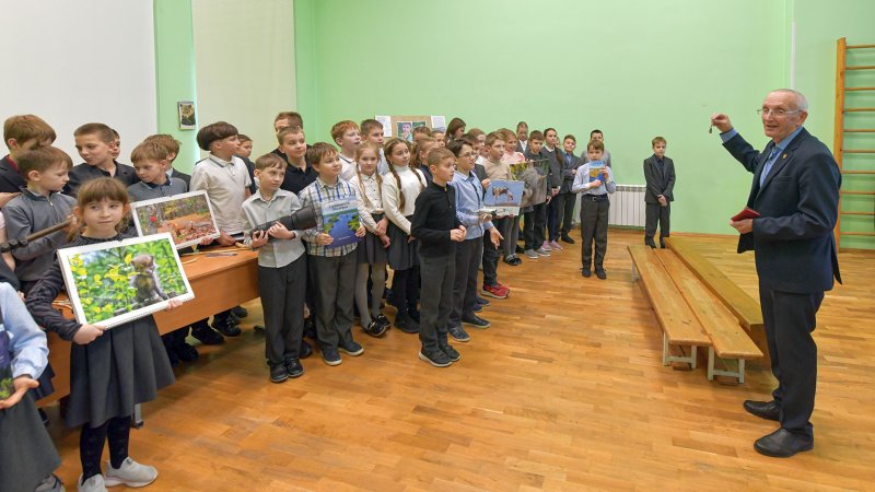 21 ноября в день Архистратига Михаила в актовом зале начальной школы Смоленской Православной гимназии прошла встреча с фотохудожником Геннадием Дубино. Были проведены 3 занятия на тему: «Дневники Смоленской природы», для учащихся 1-4 классов. Ученики с нетерпением ждали встречи с замечательным фотографом и удивительном человеком, который много знает о животных и растениях родного края. В гимназии был оформлен стенд и прошли классные часы в 1-4 классах на тему: «Певец природы — фотохудожник Геннадий Дубино».