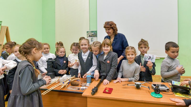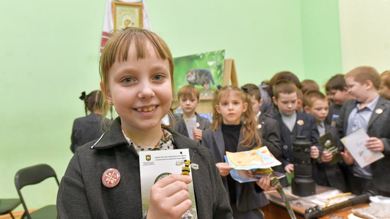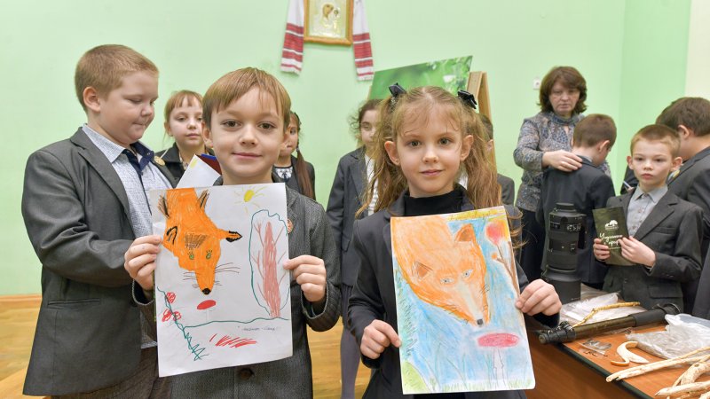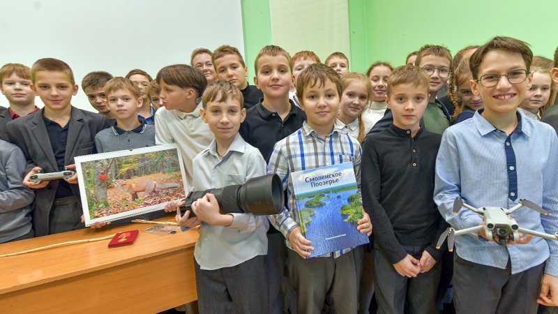 После встречи ребятам были вручены разнообразные буклеты о природе, а также путеводитель, в котором собрана вся информацию о национальном парке «Смоленское Поозерье», для гимназии на память о встрече был подарен авторский фотоальбом «Смоленское Поозерье». В свою очередь ребята подарили Геннадию Михайловичу рисунки с лисятами, поделки из бисера, алмазную мозайку.