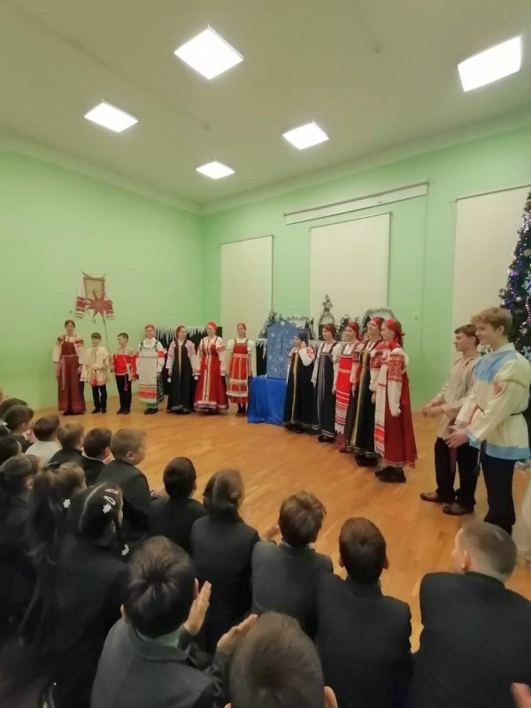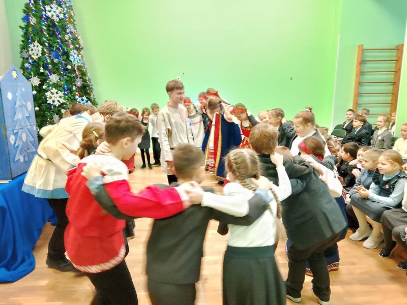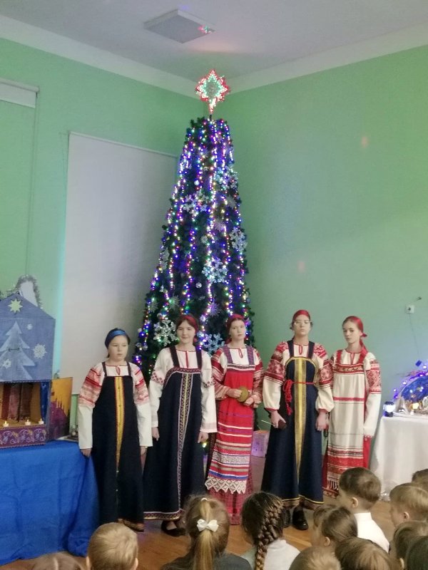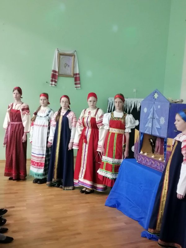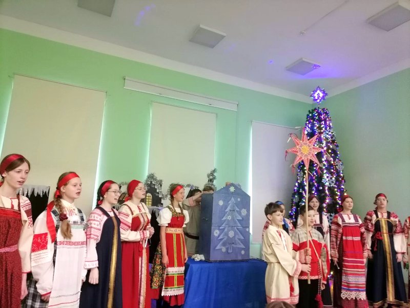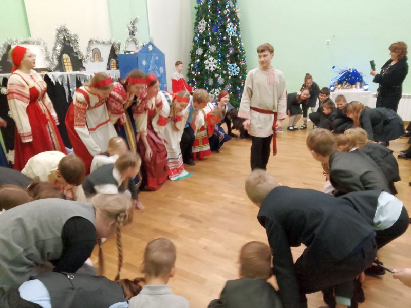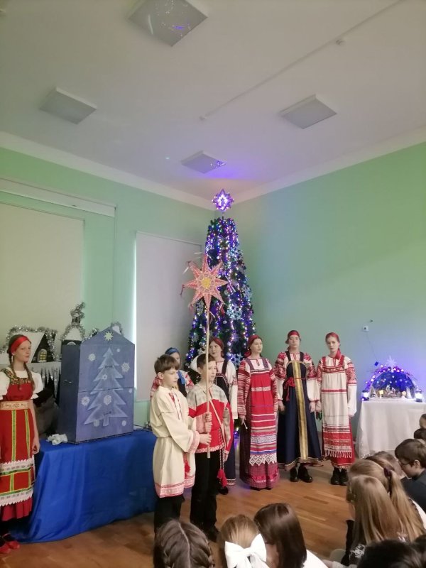 Коллектив вертепного театра «Старый город» (художественный руководитель Космынина Ирина Валерьевна) порадовал учеников начальной школы, показал евангельскую историю «Смерть царя Ирода», ученики в русских народных костюмах исполнили колядки, поиграли с детьми в русские народные игры.