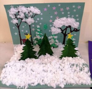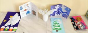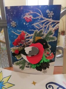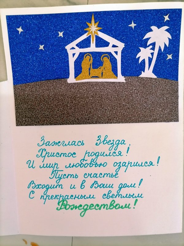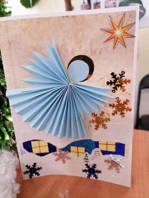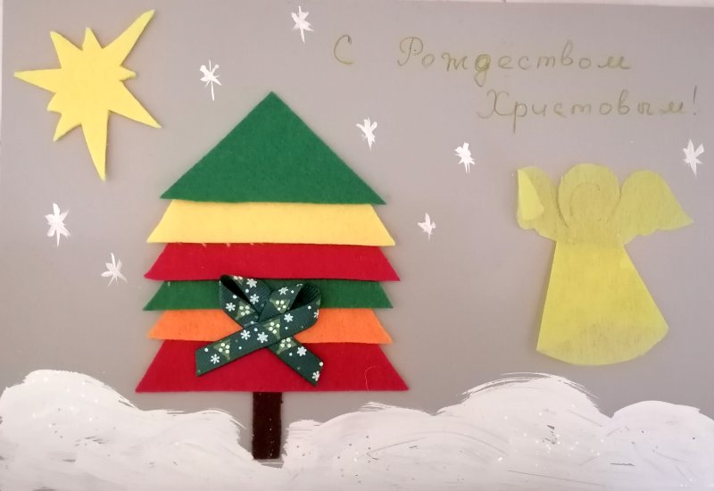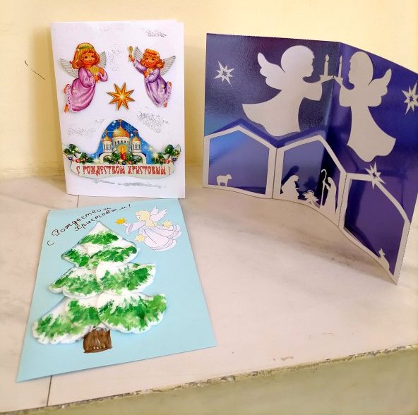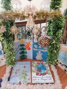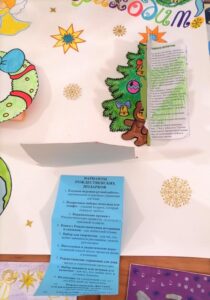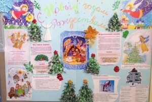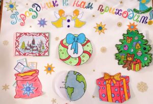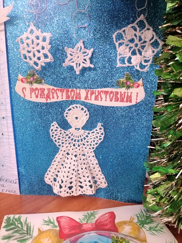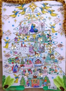 В фойе нарядили елку — игрушками, которые изготовили первоклассники. Коллективные рождественские газеты украсили наши стенды, а открытки поразили всех своим разнообразием. Все работы выполнены с любовью и теплотой! Они создают рождественскую атмосферу, прекрасное настроение и вызывают восхищение за проявленные фантазию и мастерство.