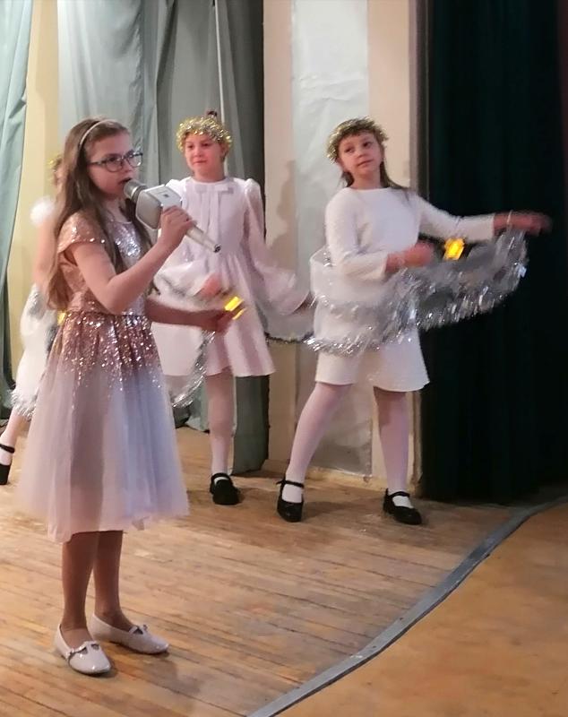 Украшением концерта стало выступление самых юных артистов, учеников 2-х классов. Они очаровали зрителей прекрасным танцем «Ангелочки с фонариками» (подготовила учитель физкультуры Сокеркина Ю.Н.), исполнили песню «Мы маленькие свечи».