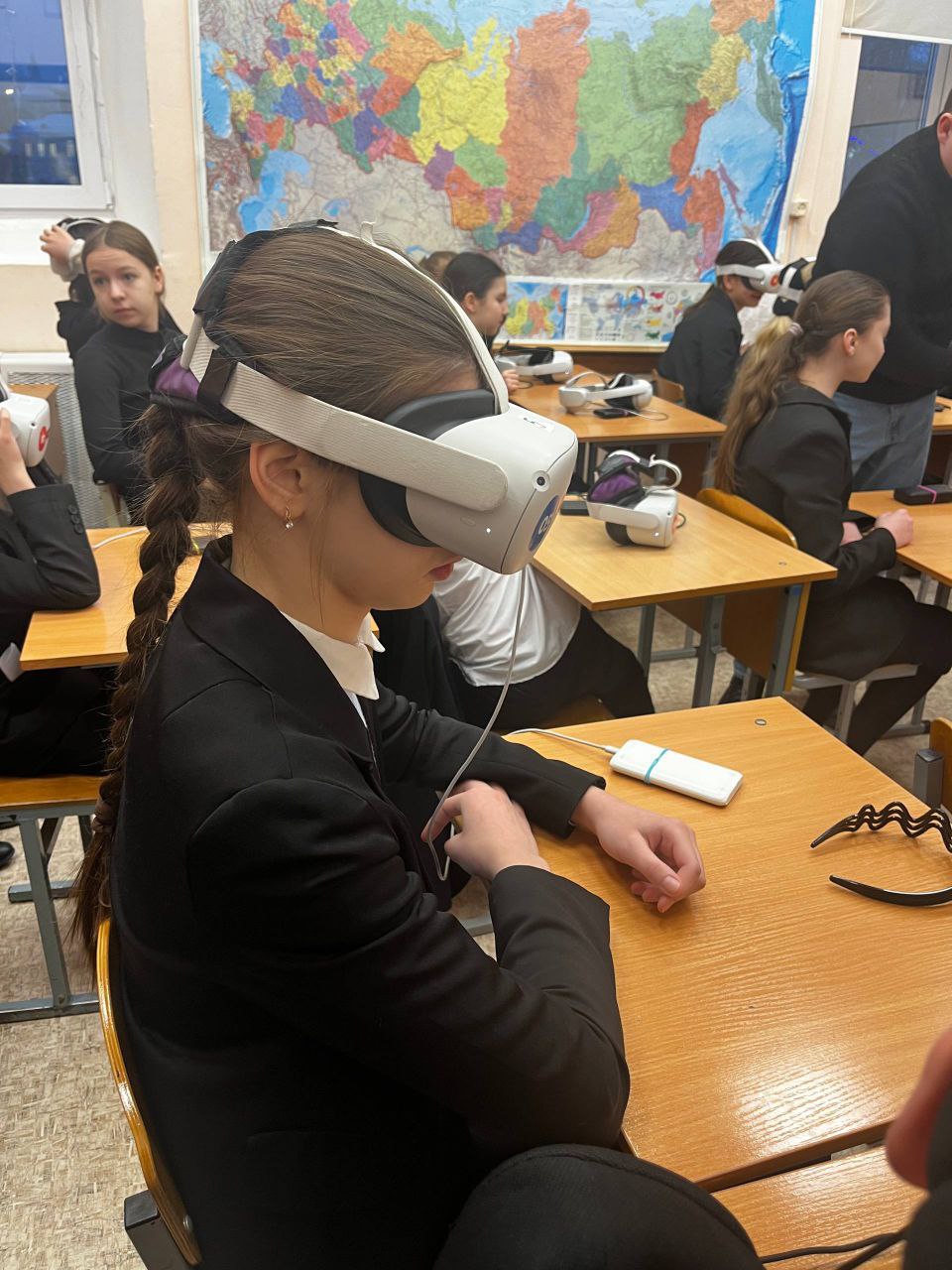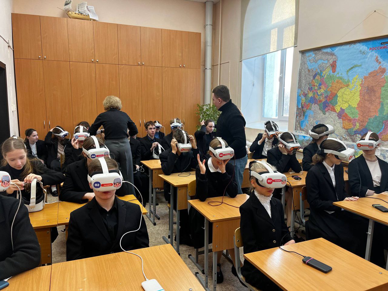 Во время нескольких уроков, ученики с 5 по 11 классы погружались в образовательные VR‑фильмы по разным научным темам, в том числе путешествовали по России и заглянули внутрь организмов.