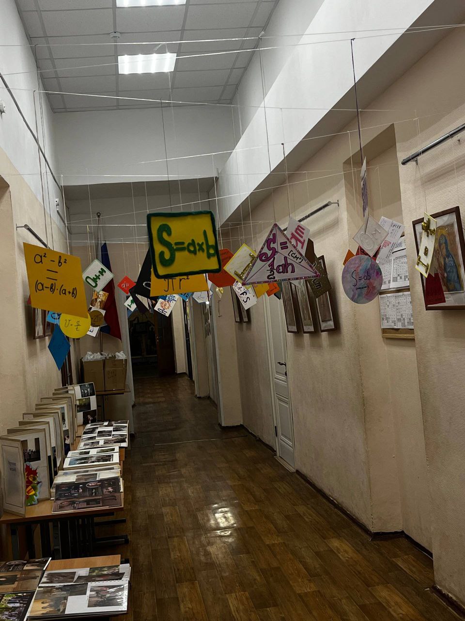 Для украшения гимназии и поддержания научного духа, дети сконструировали многогранники и представили своë видение формул по разным наукам.