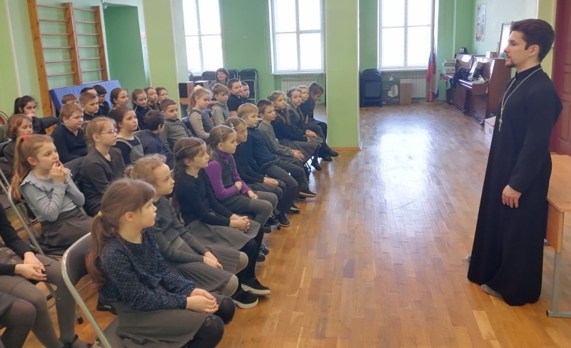 в начальной школе Православной гимназии состоялась встреча учащихся со священником.