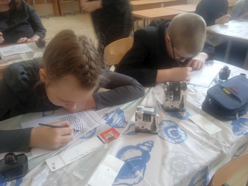 Не менее ярким событием стал мастер-класс по каллиграфии. На время учебные классы превратились в настоящие скриптории. Под руководством Павловой Надежды Анатольевны гимназисты и даже учителя осваивали искусство написания букв кириллицы, которыми когда-то записывались важнейшие государственные указы и духовные книги. Многие участники отметили, что выводить буквы устава и полуустава — задача не из легких, требующая терпения и сосредоточенности, но результат того стоил.