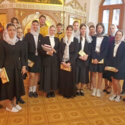 Этот день стал для старшеклассников особенным. Начался он с Божественной литургии в гимназическом храме. Службу совершил духовник Гимназии иерей Дионисий Новиков. Богослужебные чтения совершил ученик 7 класса Будревич Максим. Песнопения Божественной литургии исполнил хор учащихся гимназии. Регентовала ученица 11 класса Фролова Елизавета. Это уникальное событие в истории нашей школы. (19)